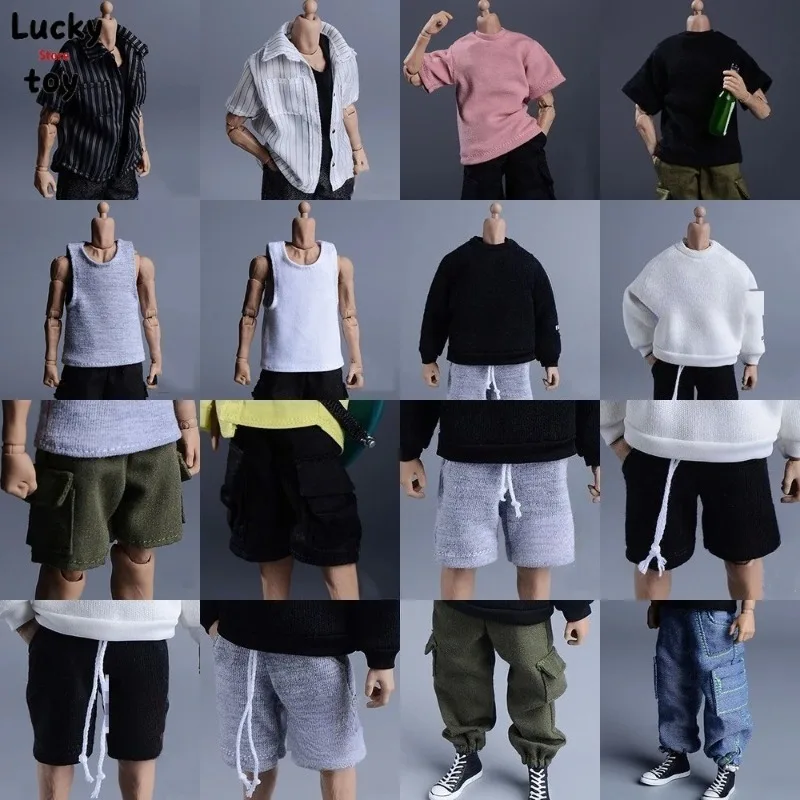 1/12 Scale Soldier Trendy Multi-pocket Cargo Shorts Loose Vest T Shirt Hoodie Clothes Model for 6 ‘’ Action Figure Body