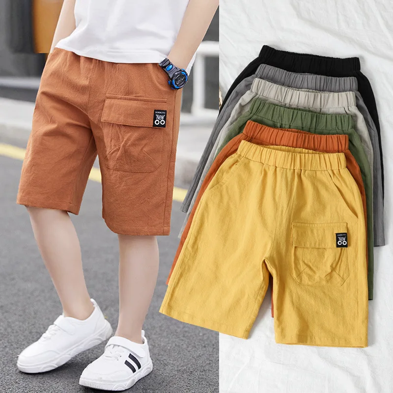 Children Boys Shorts Casual Solid Color Elastic Waist Boys Cargo Pants Summer Calf Length Kids Trousers Sport Pants for 2-12 Yrs