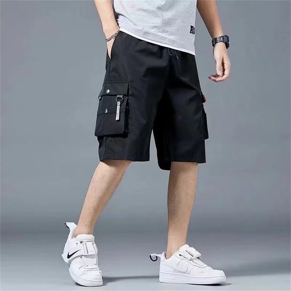 Black Hip Hop Cargo Shorts for Men's Summer Wide Leg Casual Shorts Korean Gray Green Pants Loose Japan High Waist Pants Men