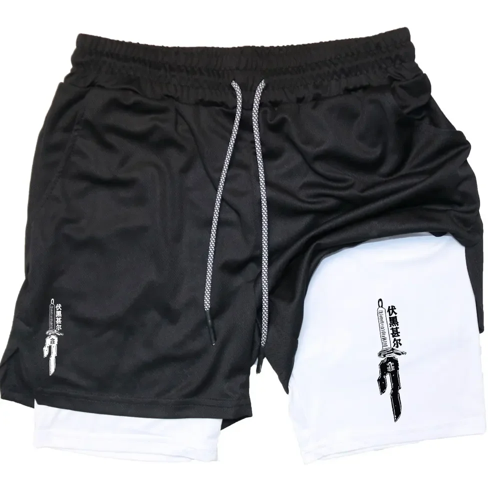 Anime Performance Shorts Men GYM Casual Sports Summer Compression Shorts Workout Running Mesh 2 In 1 Sport Short Pants