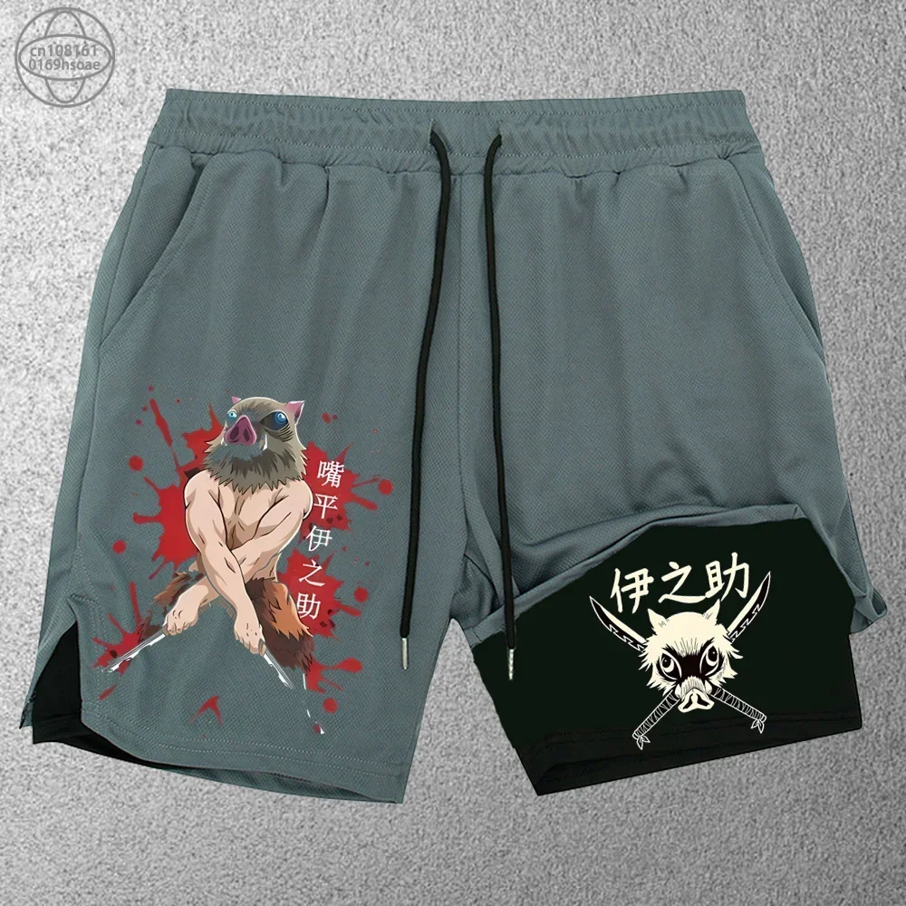 Men's Fitness Two-in-one Shorts Double-layer Beach Pants Trendy Printed Sports Shorts Outdoor Training Running Shorts S-2XL