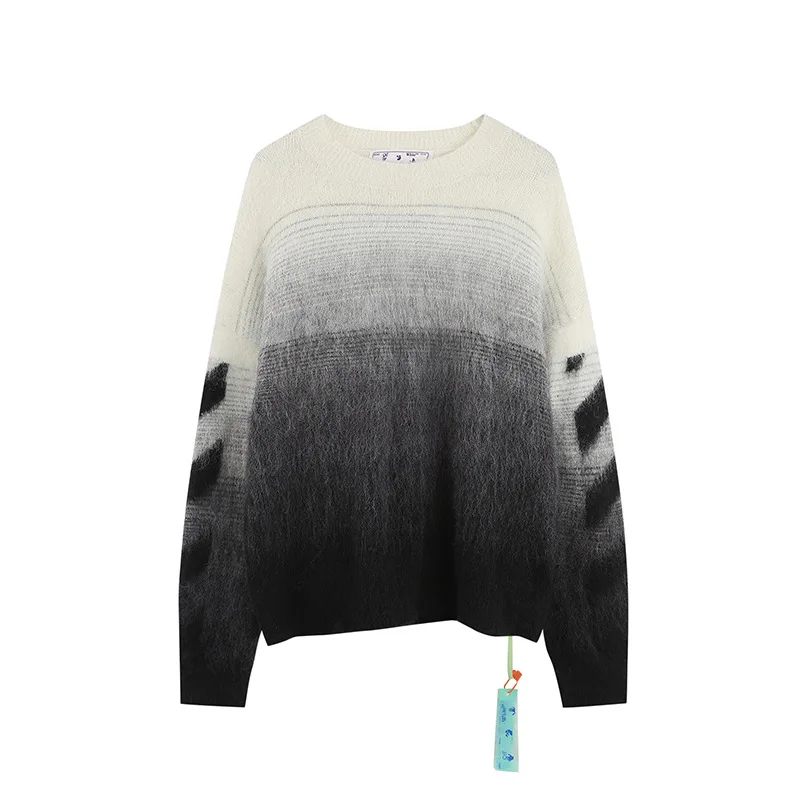 Gradual Black White Knitted Sweater Man Loose Lazy Harajuku Simple Style Couple's Knitted Sweatshirt Top Autumn Winter Clothes