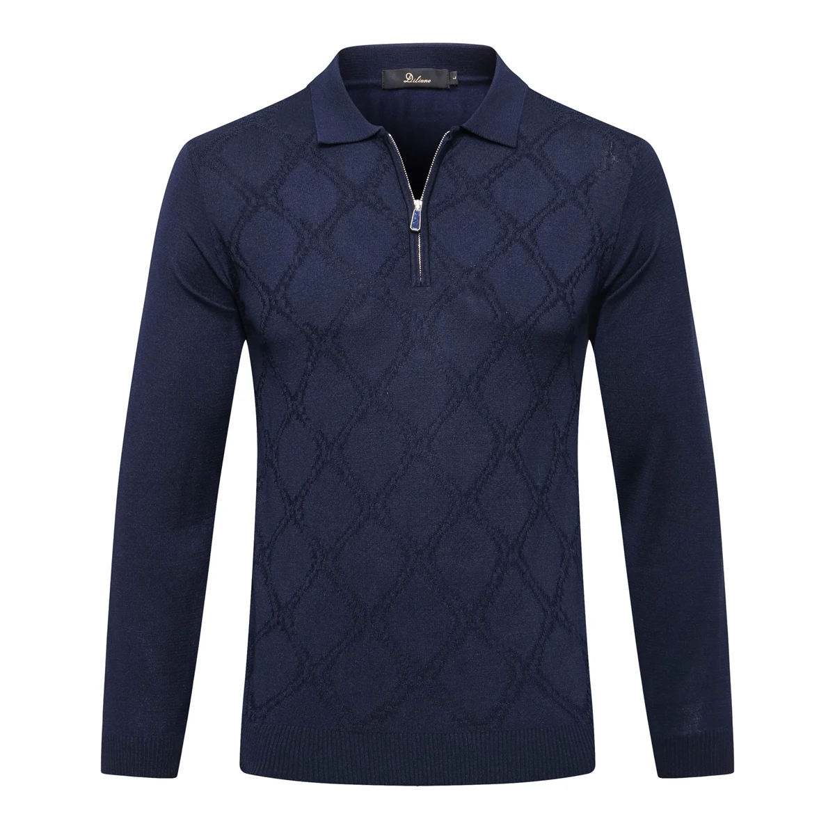 2025 Men's Autumn And Winter 100% Merino Pure Wool Knitted Sweater Men's Business Casual Knitted Polo Collar Pullover Top YJ1815