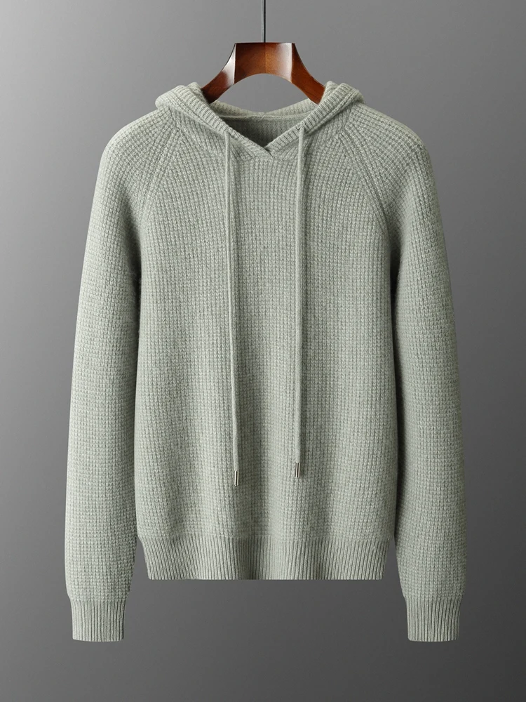 Men Hooded Pullover Sweater 100% Cashmere Knitwear Waffle Jacquard Autumn Winter Thicken Casual Soft Raglan Sleeve Clothing Tops