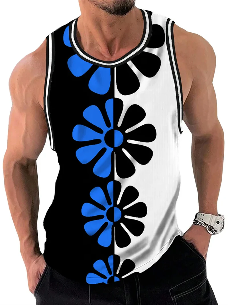 Simple Floral Graphic Tank Tops For Men Fashion Summer Crew Neck 3D Printed Sleeveless Vest Casual Oversized Quick Dry Clothing