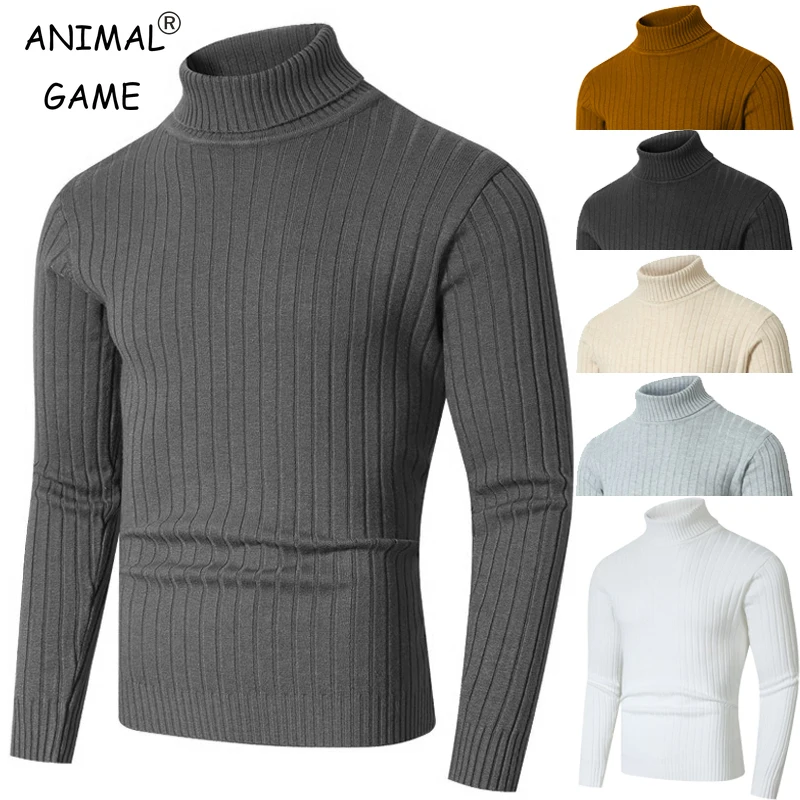 Animal Game Autumn Men's Mock Neck Sweaters Long Sleeve Turtleneck Pullover Sweater Winter Warm Stripes Basic Knit Cold Blouse  Read more