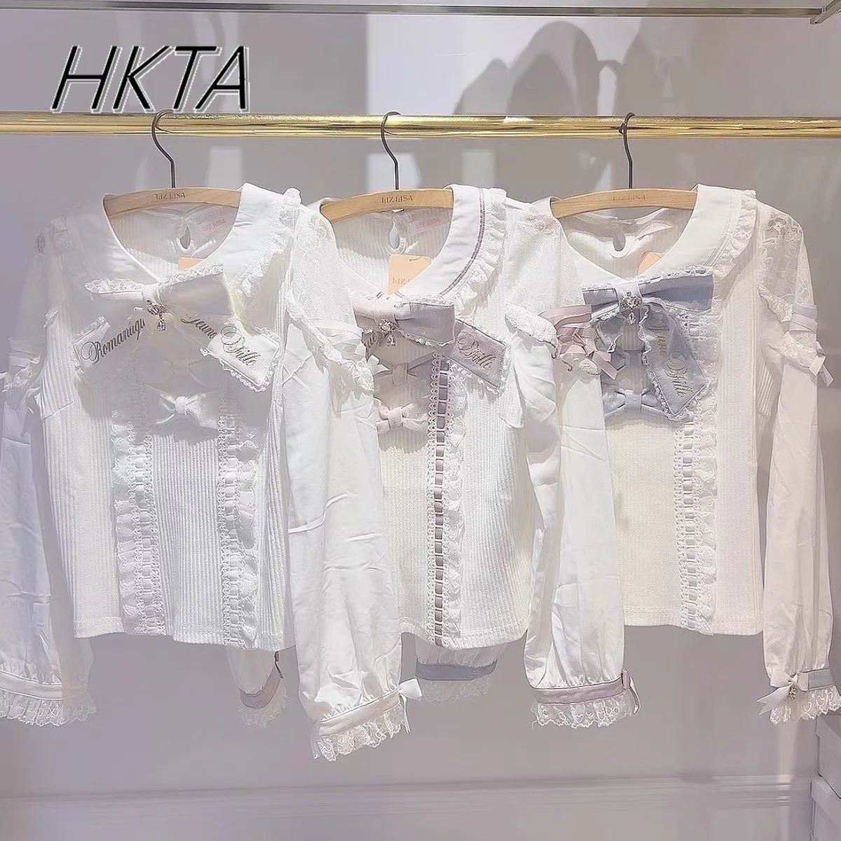 Sweet Japanese Liz Top Mine Mass-produced Knitted Sweater Shirt Embroidered Bow Color Matching Knittwear Sweater Tshirt Top Girl
