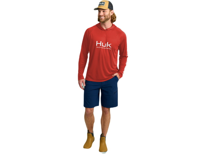 HUK Performance Fishing Vented Pursuit Hoodie - Men's Scarlet Blaze Extra Large H1200525-621-XL. This lightweight crew neck shirt with mesh vented sides is an ideal layer on cooler days and perfectly worn by itself when it's hot. With +UPF 50 to...  Read more
