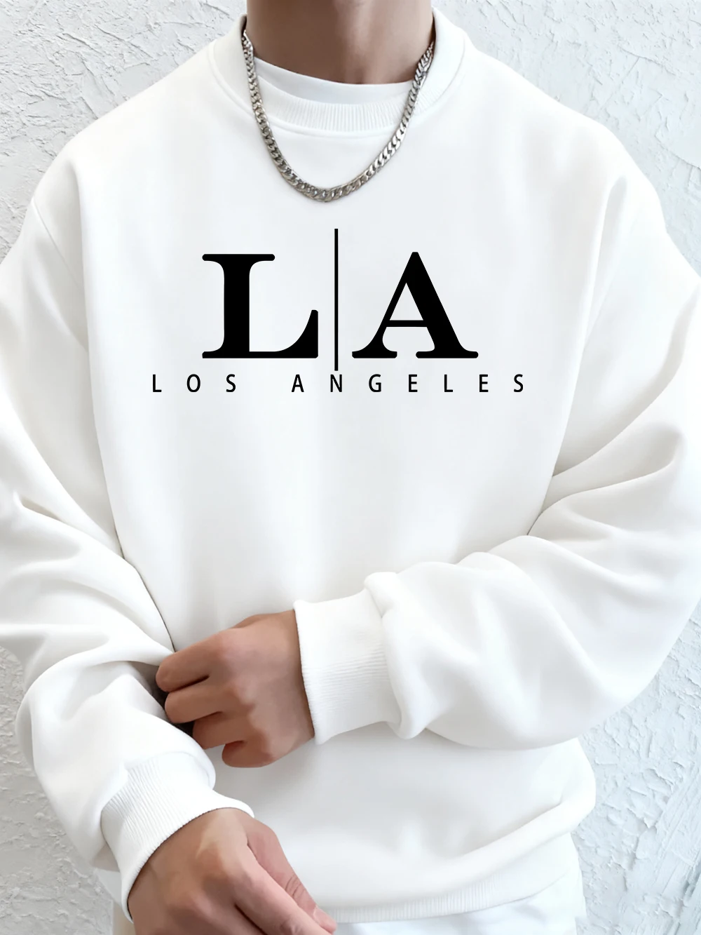 Los Angeles Letter Printing Mens Sweatshirt Winter Fleece Warm Hoodie Korean Loose Crewneck Streetwears Hip Hop Male Clothes