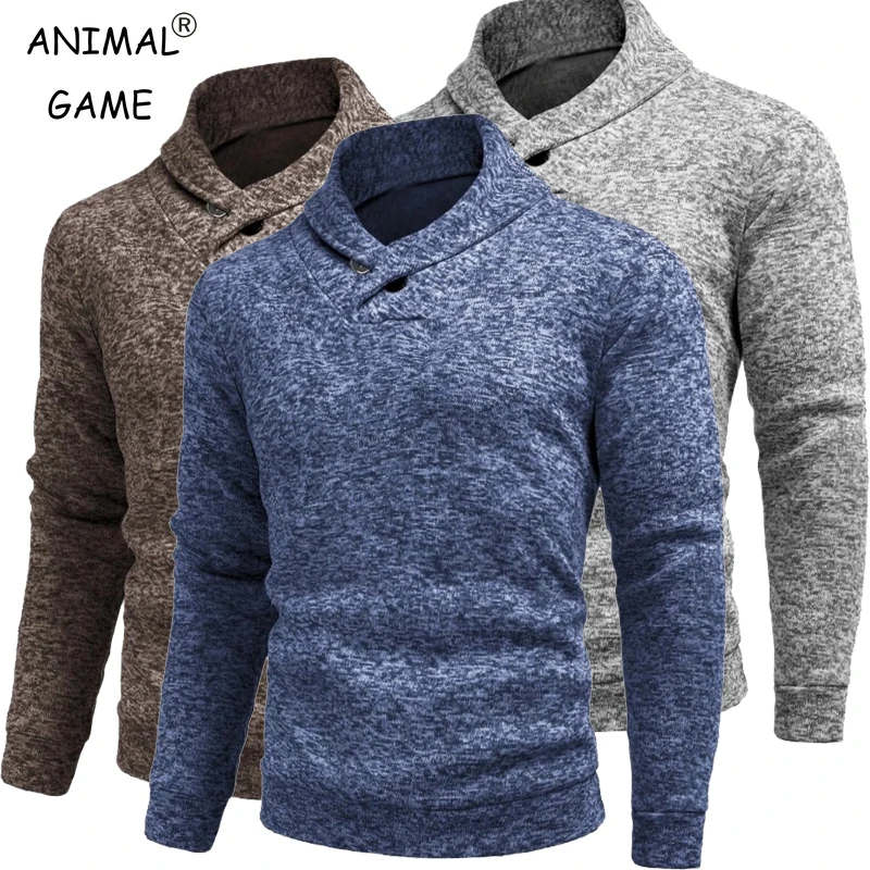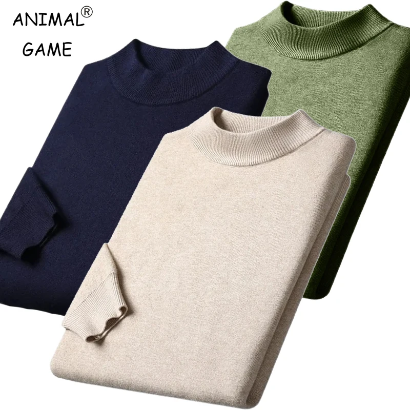 Animal Game Turtleneck Knitwear Luxury Men's Sweater Long Fit Pullover Sweaters Solid Color Men Streetwear Warm Cold Blouse