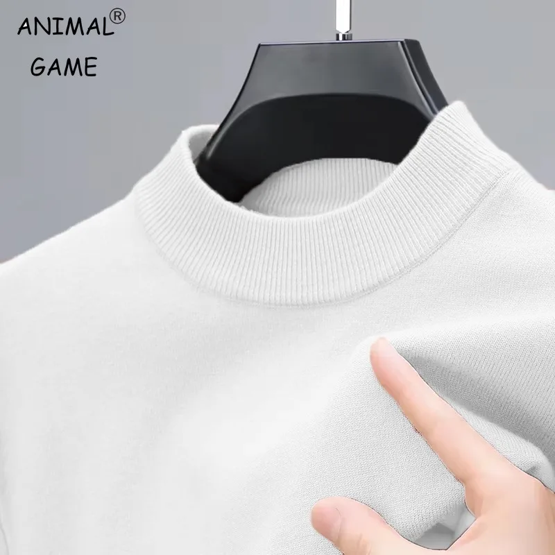 Mens Half Turtleneck Knitwear Sweater Autumn Mock Neck Sweatshirts Solid Color Pullover Streetwear Winter Warm Knitted Sweater