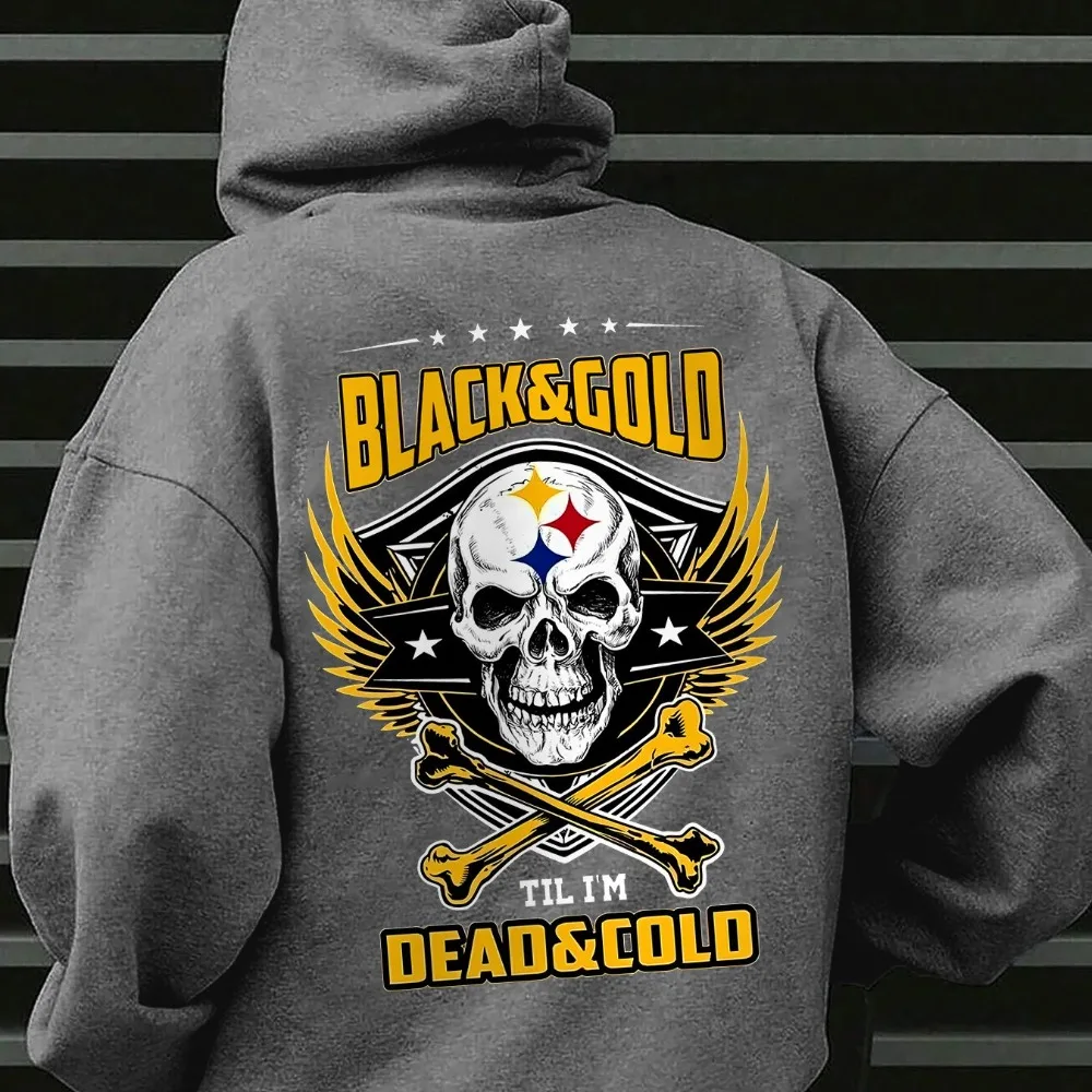 Unisex Black & Golden Steelers Graphic Hoodie Casual Cotton Long Sleeve Hooded Sweatshirt with Slight Stretch Knit Fabric
