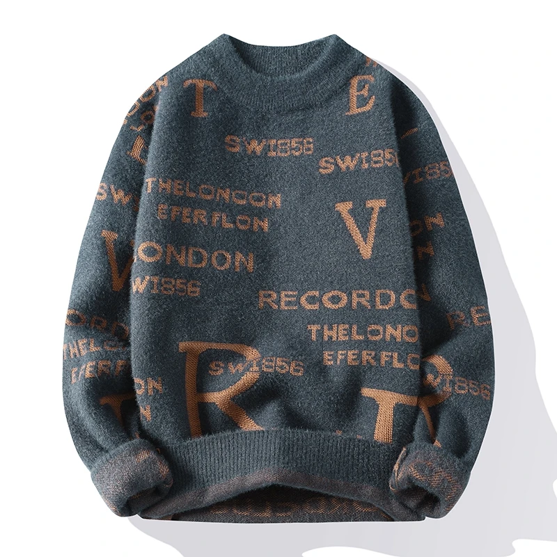 Fashion Letter Sweater For Mens Pullover O-Neck Slim Fit Jumpers Knitwear Warm Winter Korean Style Casual Mens Clothes