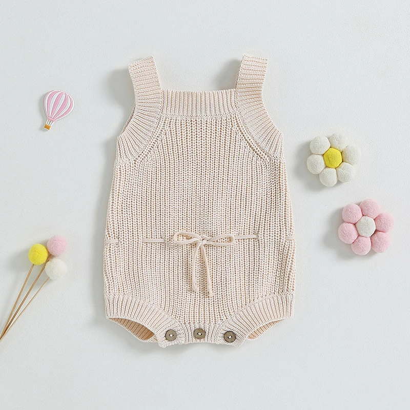 Suefunskry Baby Fall Sweater Romper Casual Sleeveless Square Neck Solid Color Knitted Bodysuit Infant Outfit 0-24Months