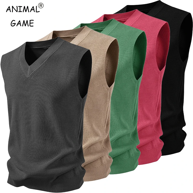 Men's V Neck Sweater Vest Knitted Pullover Sweaters Vest Slim Fit Sleeveless Pullovers Sleeveless Waistcoat Business Tank Tops
