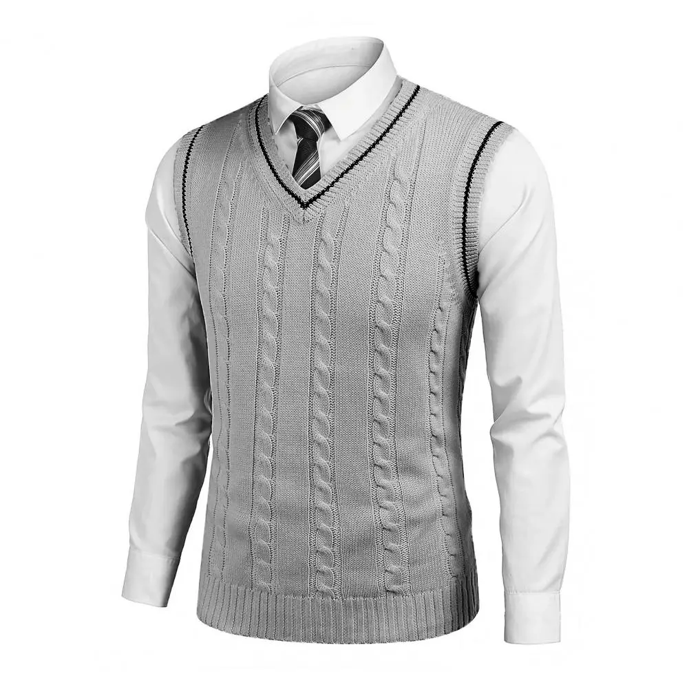 Men's Sleeveless Sweater Vest Lightweight V-Neck Solid Vest Pullover Twist Knit Sweaters Autumn Mens Outerwear