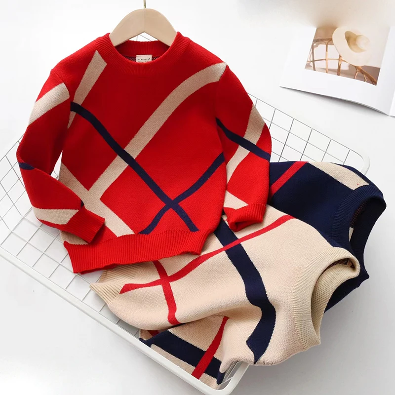 New Autumn Winter Children's Sweater Underlay T-Shirt Round Neck Double Layer Cotton Stripe Small and Medium Sweater