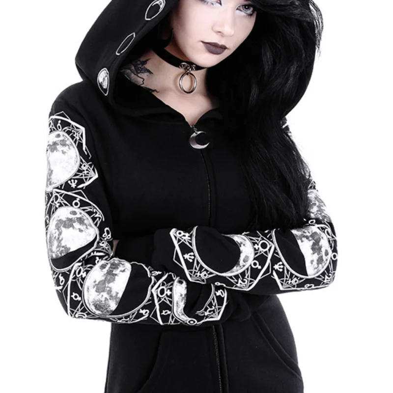 Hot Selling Black Punk Peng Hoodie with Moon Print Long Sleeved Hoodie  Read more