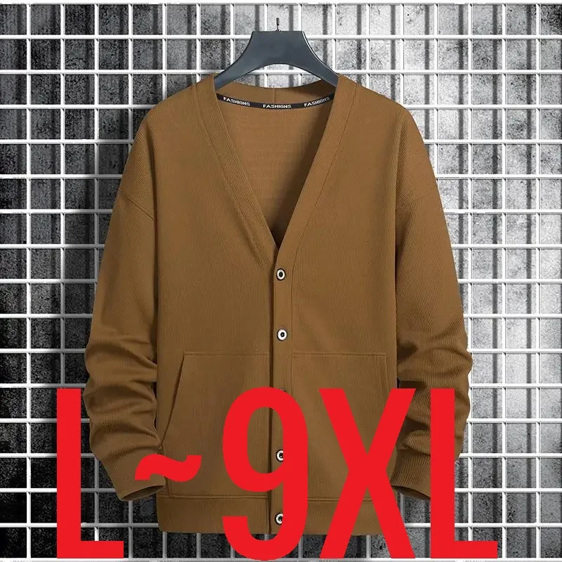 Knit Cardigan Men Korean Style Solid Loose Over Fit Button Knitwear Male V Neck Oversize Golf Wear Big Size 8XL Top Coat Sweater