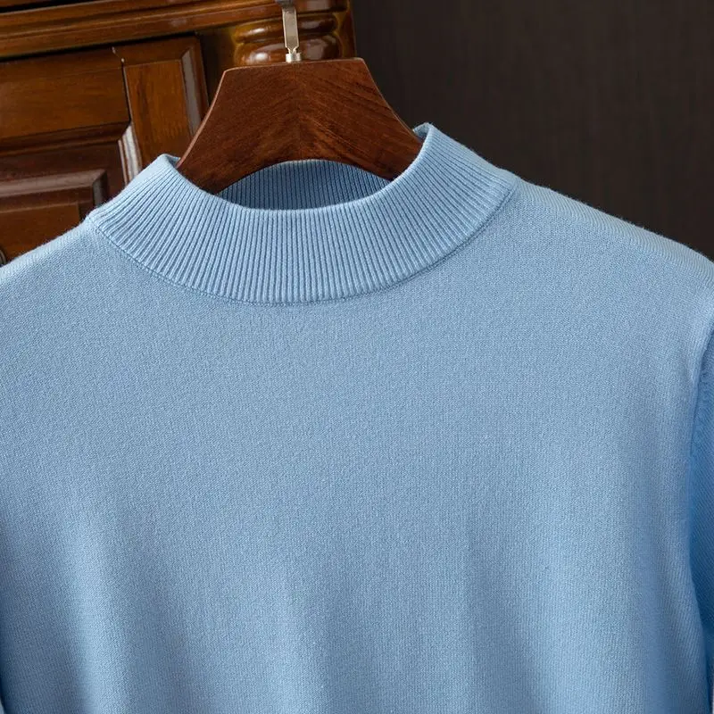 Half Turtleneck Cardigan Men's Loose Warm Bottom Shirt Thickened Pullover Mid-collar Sweater Solid Color Sweater