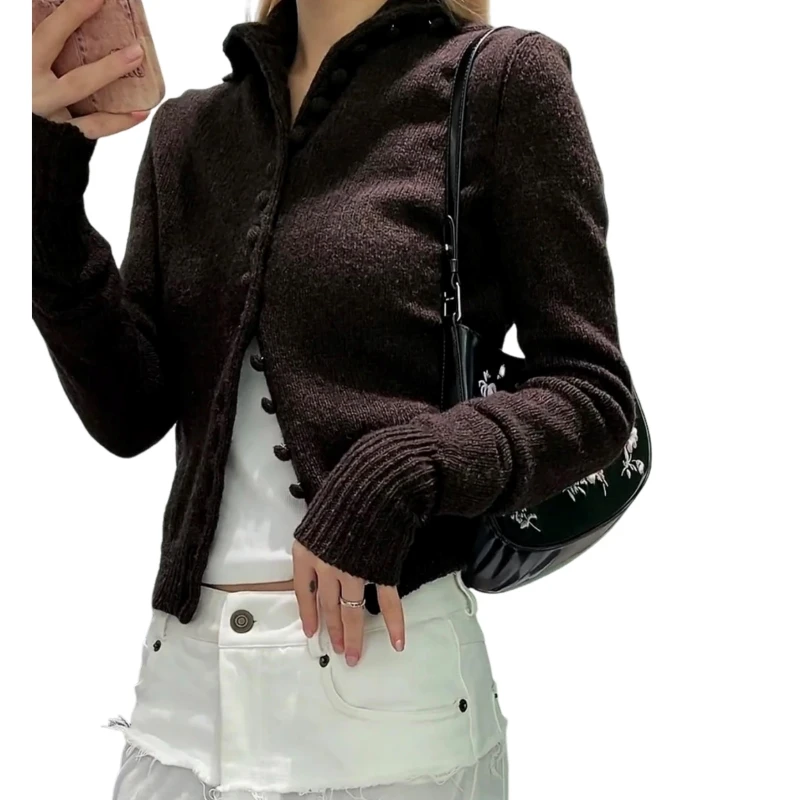 2025 Collar Short Sweater Jacket Soft and Lazy Knitted Cardigan Beautiful and Fashionable Top for Spring and Autumn  Read more