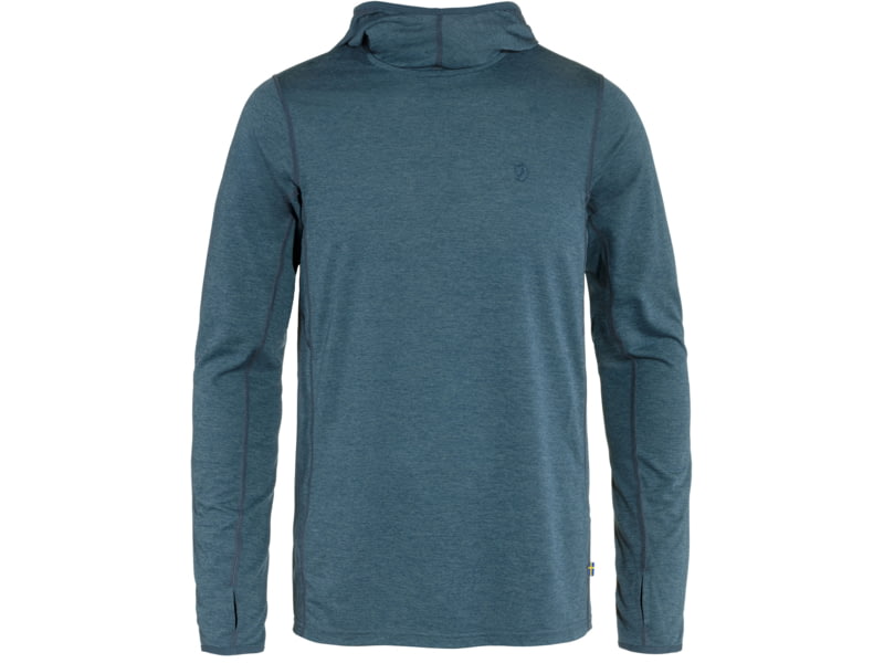 Fjallraven Abisko Sun-Hoodie - Men's Indigo Blue Small F87199-534-S. Made using a technical jersey knit that wicks away moisture and dries in no time for maximum comfort on sunny days on the hiking trail. Long sleeves and a hood offer light...  Read more