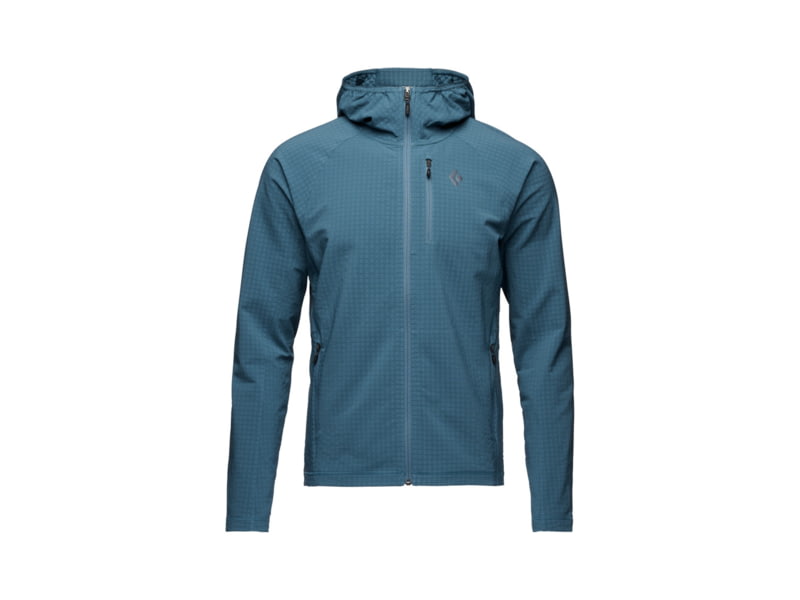 Black Diamond Coefficient Storm FZ Hoody - Men's Creek Blue Extra Large AP7440184064XLG1. This hoody is built with a grid back that provides additional warmth and breathability plus a wind and water-resistant coating that adds some midlayer warmth...