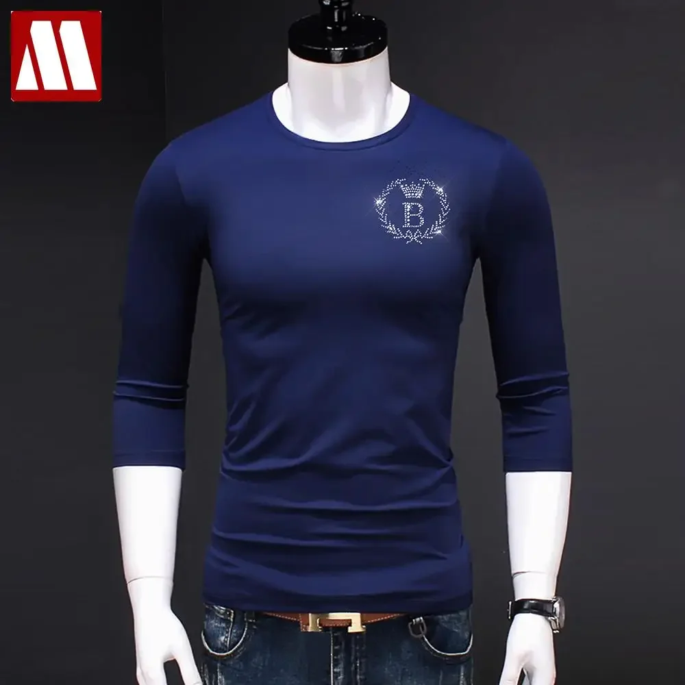 2025 New Arrival Men's Business Style Graphic T Shirts Man's Crown Rhinestone Print Cotton Tops Tees Hot Drill Oversized T Shirt