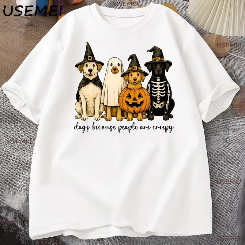 Dogs Because People Are Creepy T-shirt Funny Halloween Dog Mom Tshirt Spooky Vintage Dog Lover Graphic T Shirts Men's Clothing