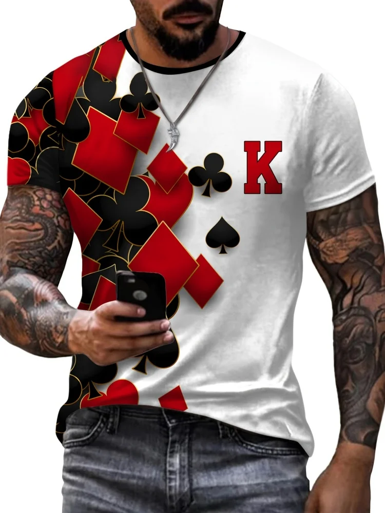 Men's 3D Poker King Print T-Shirt Street Harajuku Crew Neck Short Sleeve Tee Summer Sports Oversized Graphic T-Shirts Clothing