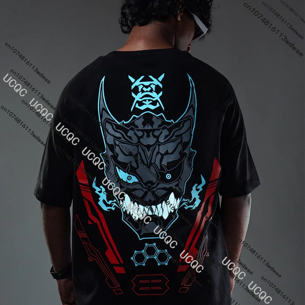 Devil King Print Men's Black T-Shirt KAIJU NO. 8 Vintage Graphic Tee Gothic Streetwear Top for Men Cool Demon Style Casual Shirt
