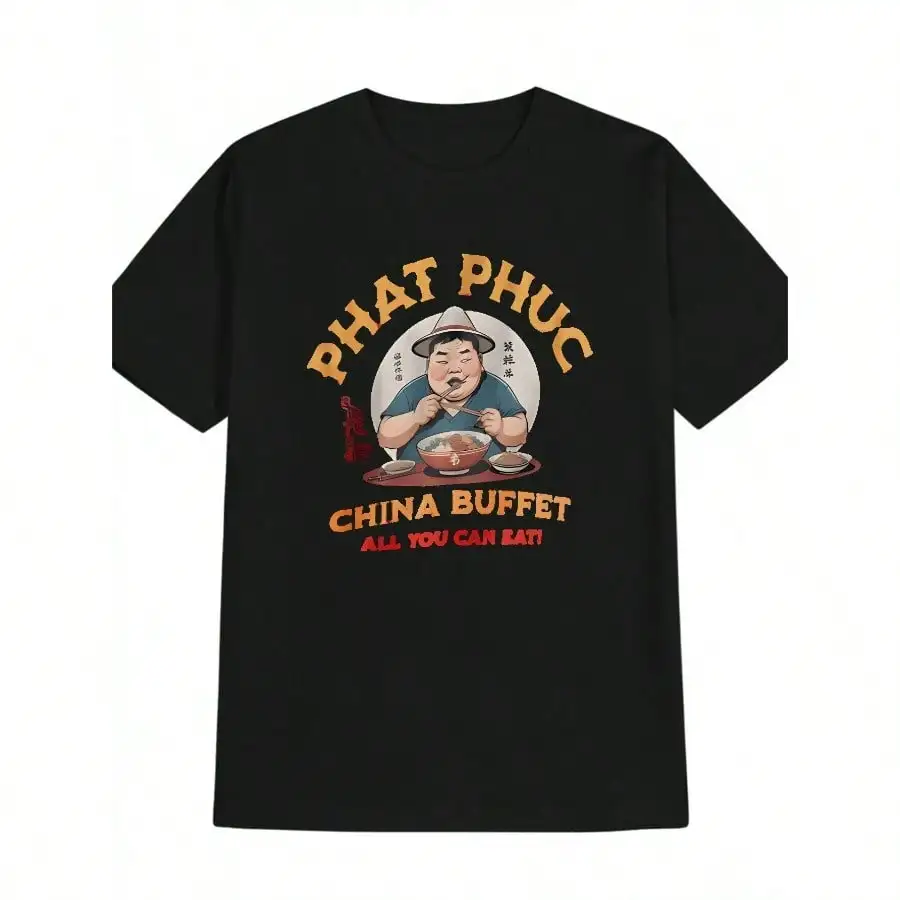 Men's Casual Crew Neck T-Shirt with "PHAT PHUC" Graphic - Funny China Buffet Slogan, Black Cotton Tee, Machine Washable