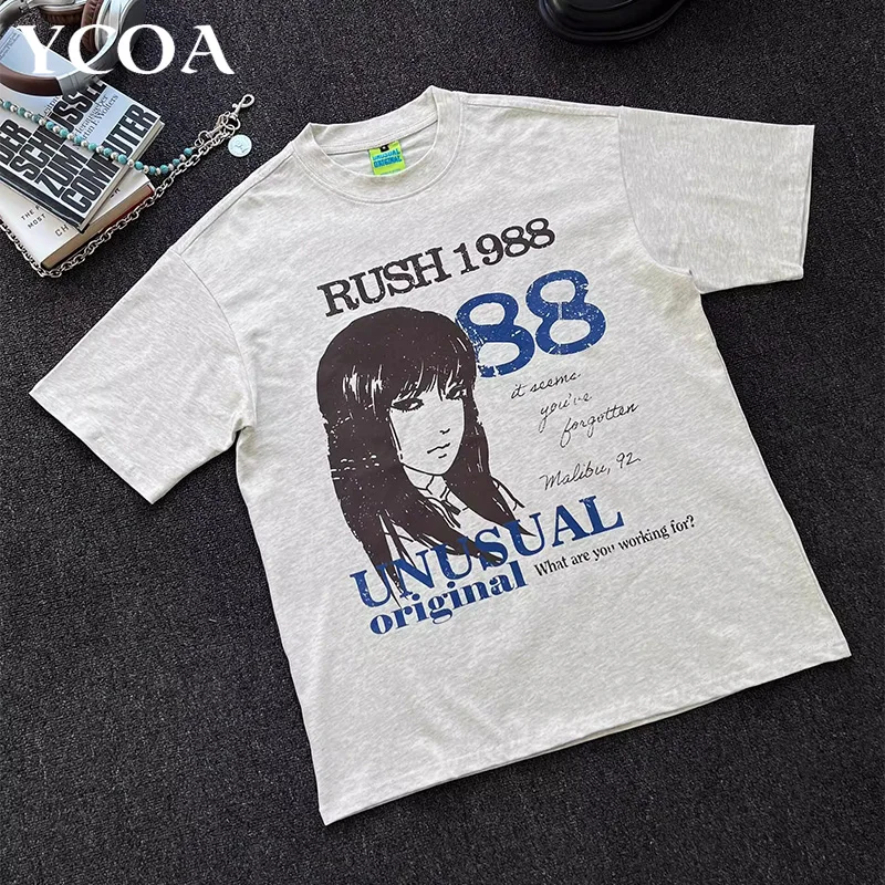 New Arrival Mens Clothes Tee Shirt Homme T-Shirts Men Tshirt for Men Ropa Hombre Japanese Anime Graphic Washed Black 62921