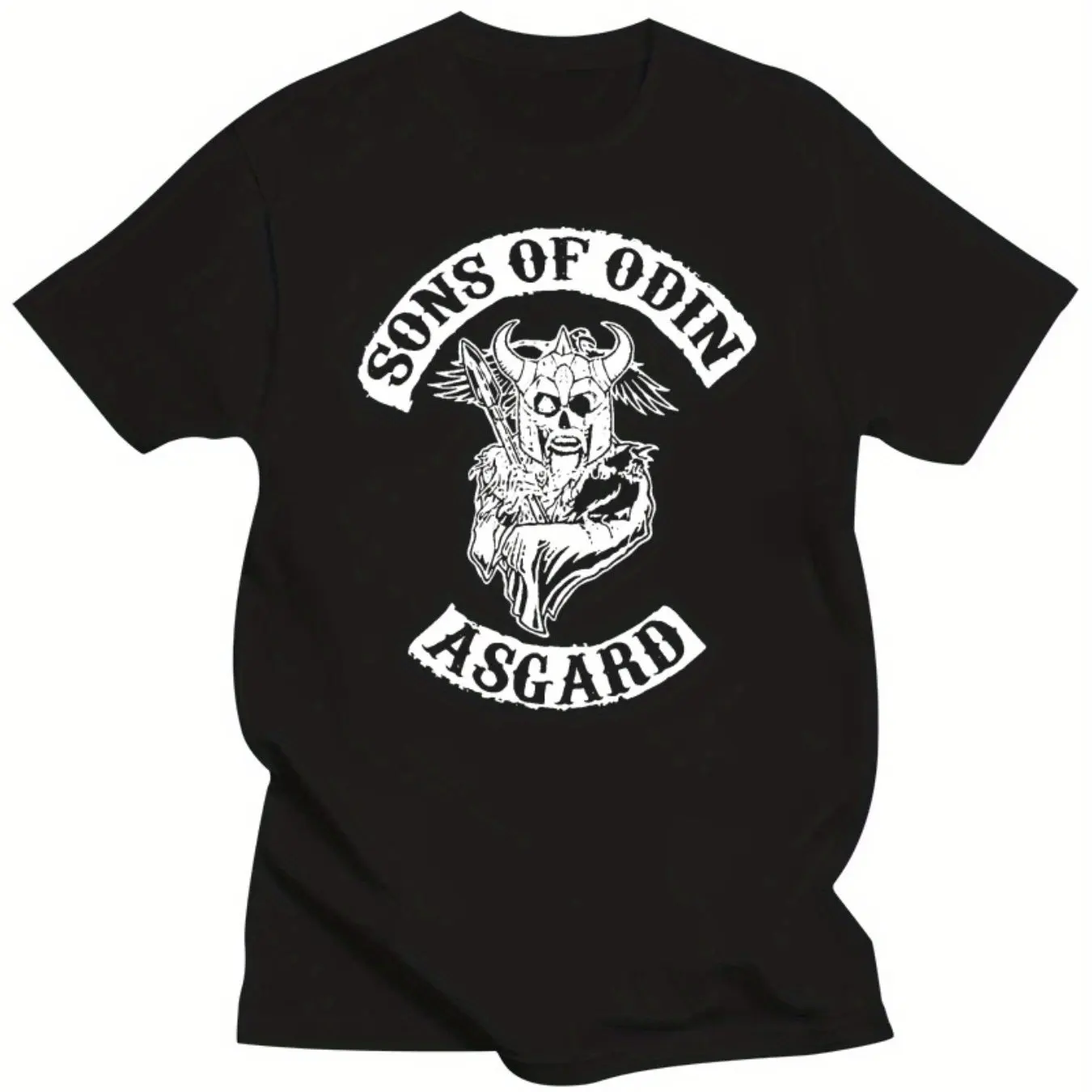 Men Cotton T-Shirt Sons of Odin Asgard Chapter Graphic Tee with Norse Mythology Bull Design Breathable Short Sleeve Round Neck