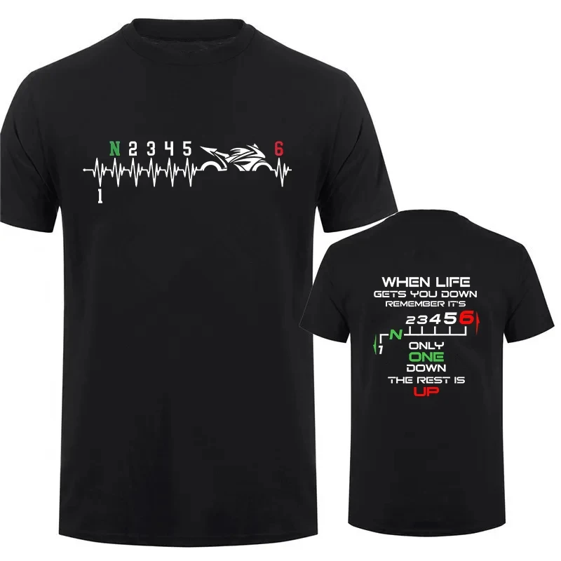 1N23456 Motorcycle Gear Biker Heartbeat Print Men T-Shirts Summer Men's T Shirt Clothing Oversized Men Tshirt Graphic T Shirt