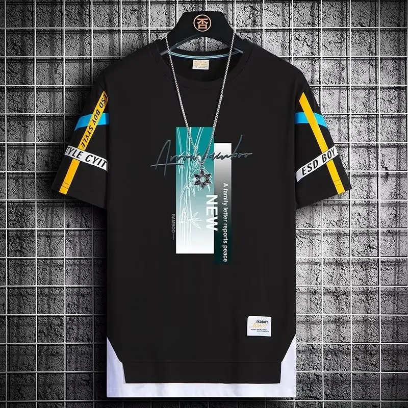 Korean Men's T-shirt Summer High Street Fashion Print Short Sleeve Tee Casual Breathable Men's Clothing O Neck Sports T-shirt