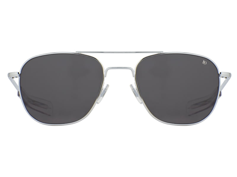 AO Original Pilot Sunglasses Silver Frame 57 mm True Color Gray SkyMaster Glass Lenses Bayonet TempleOP-257BTCLGYG