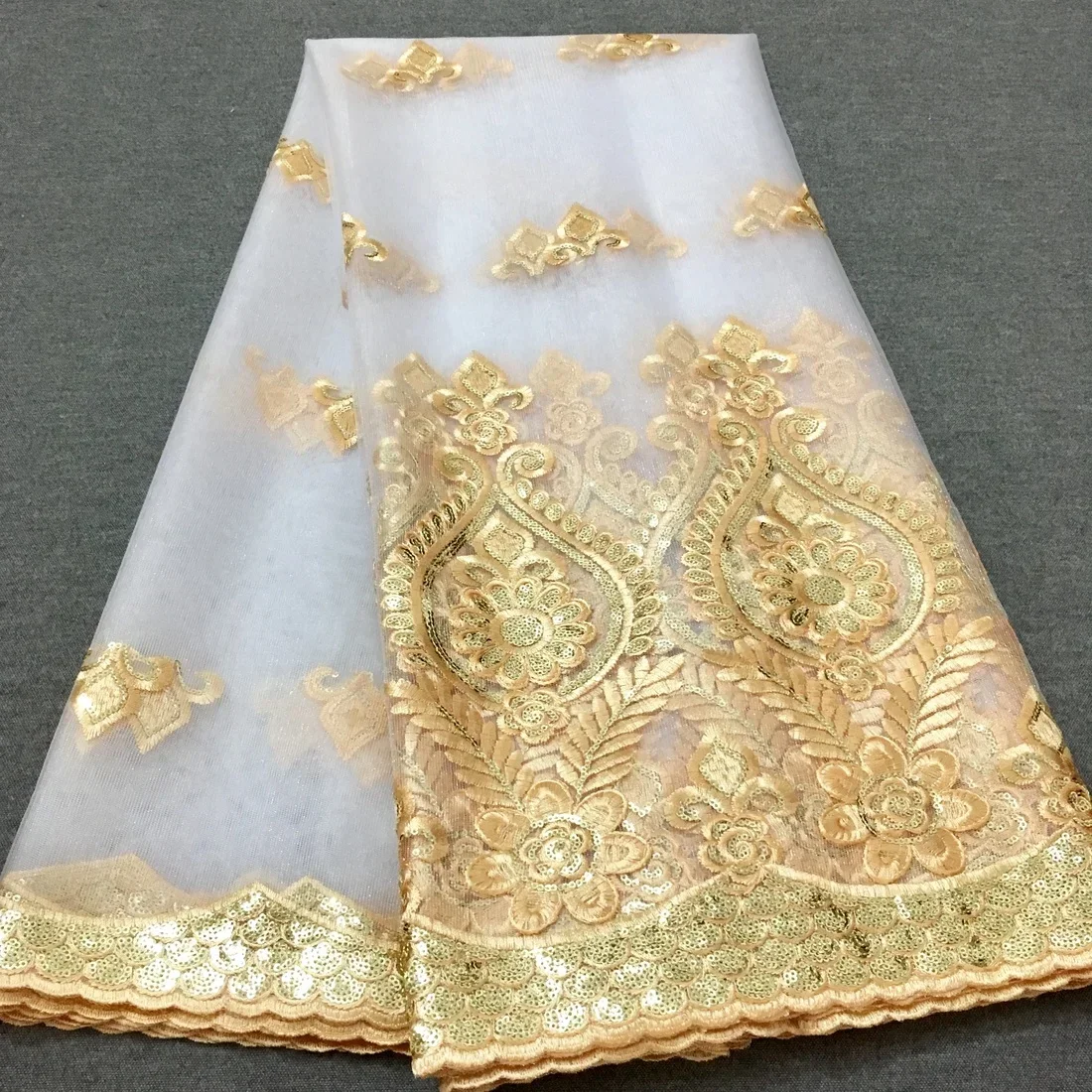 2024 Latest Gold French Nigerian Lace Fabric High Quality Sequins Tulle African Lace Fabric Cheap Wedding Party Mesh Lace LYX01G