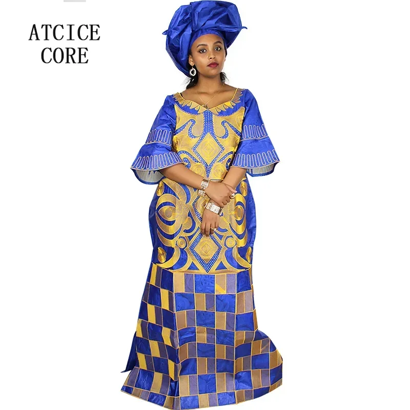 African Dresses For Woman Bazin Riche Computer Emboridery Plus Size Long Dress With Scarf