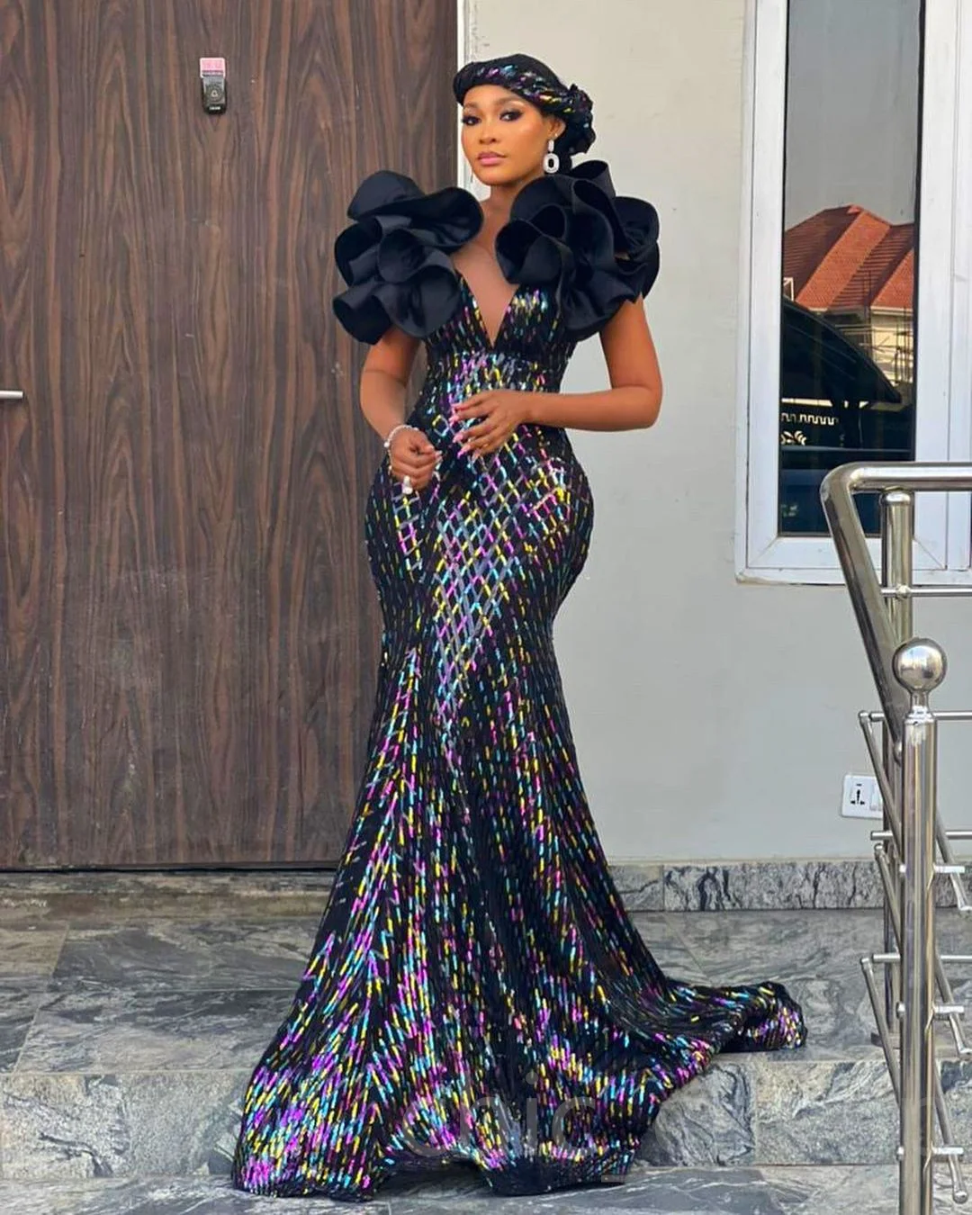 Black African American Prom Dresses Mermaid V-neck Lace Ruffles Black Girls Nigeria Robe De Soiree Evening Gown Customized  Read more