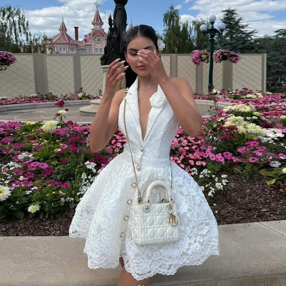 Dresses - White - Halter - Lace |