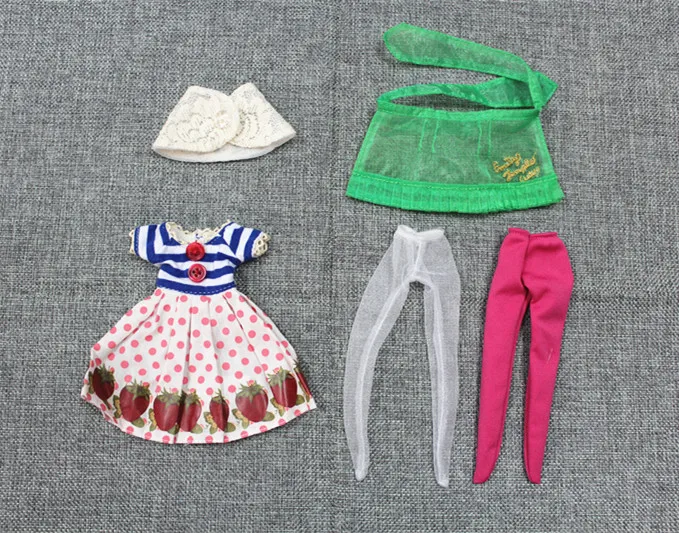 Blygirl Blyth dollClothes strawberry skirt blue and white jacket apron and shawl a total of 5 pieces  Read more
