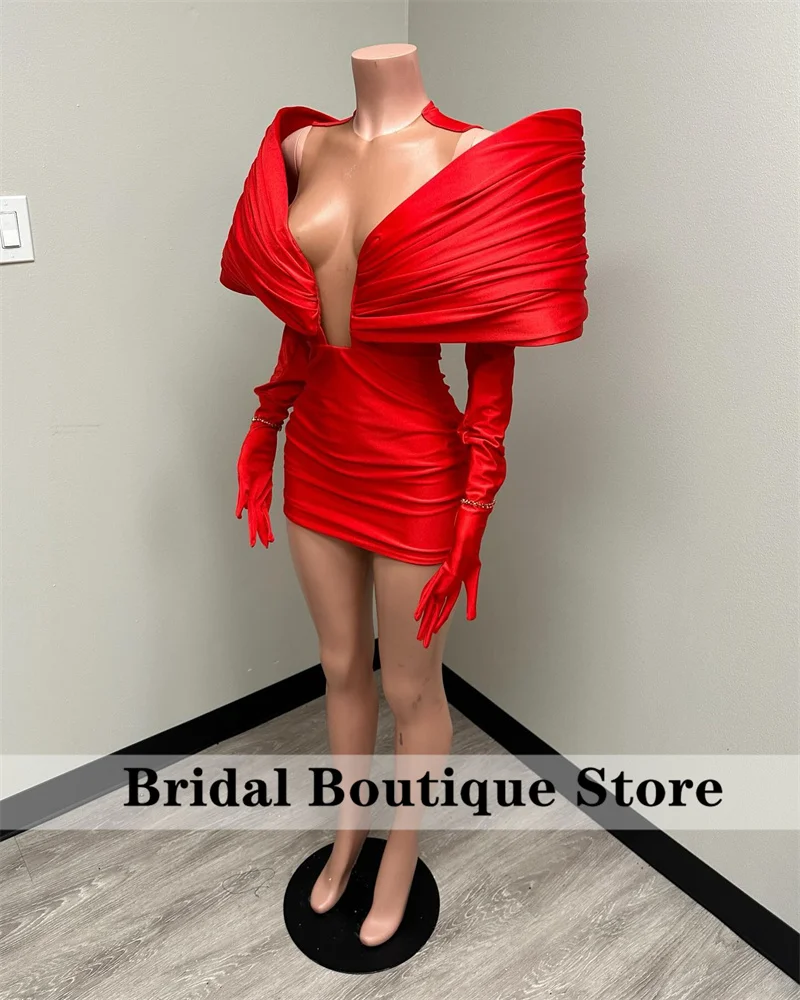 Sexy Red Lace Prom Dress 2024 For Black Girls Strapless Birthday Party Gowns With Gloves Mini Cocktail Homecoming Customized
