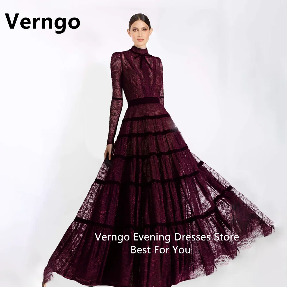 Verngo Dark Red Lace Party Dress For Women High Neck A Line Prom Gowns Countercandy Elegant Formal Dress Outfit Customized
