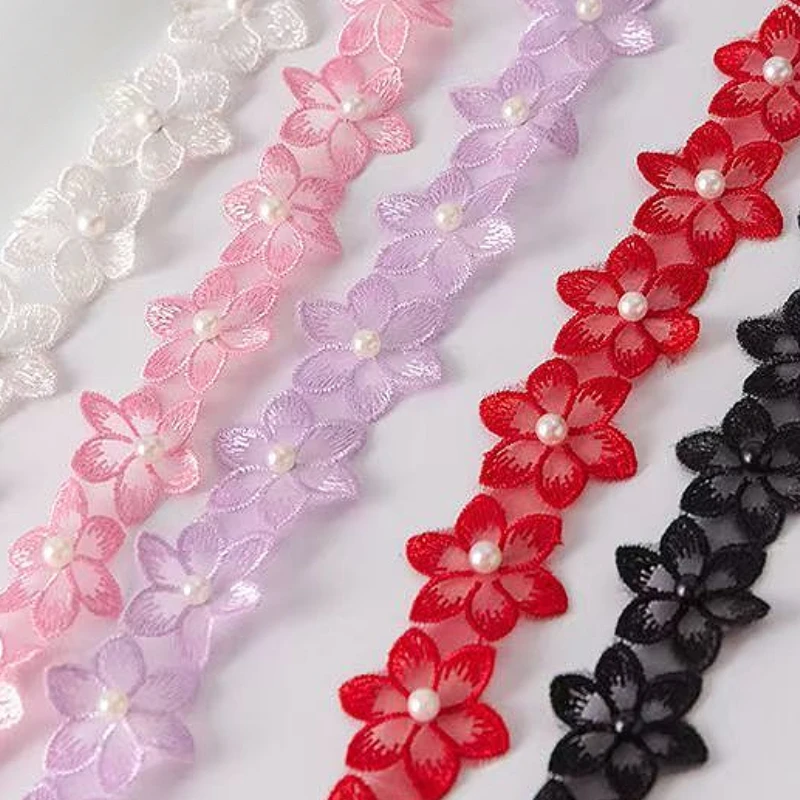 Flower Pearl Beaded Embroidered Flower Lace Ribbon Trim Beaded Fringe Lace Fabric Handmade Dress Sewing Supplies