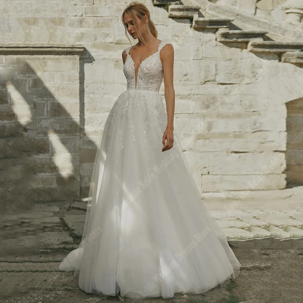 Illusion A-Line Women Wedding Dresses Sweetheart Collar Lace Flower Printing Bridal Gowns Princess Engagement Banquet Robe 2025
