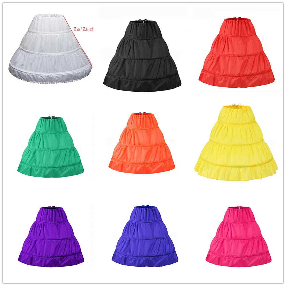 White Children kids Petticoat A-Line Hoops One Layer Flower Girls Crinoline Lace Trim Flower Girl Dress Underskirt