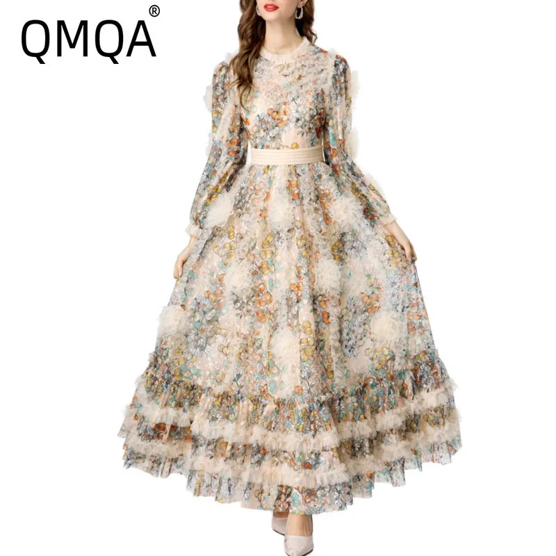 QMQA Fashion Women's Evening Dress Three-Dimensional Flower Lace Print Long Sleeve Ruffled Dresses 2025 Autumn New Clothes QM787  Read more
