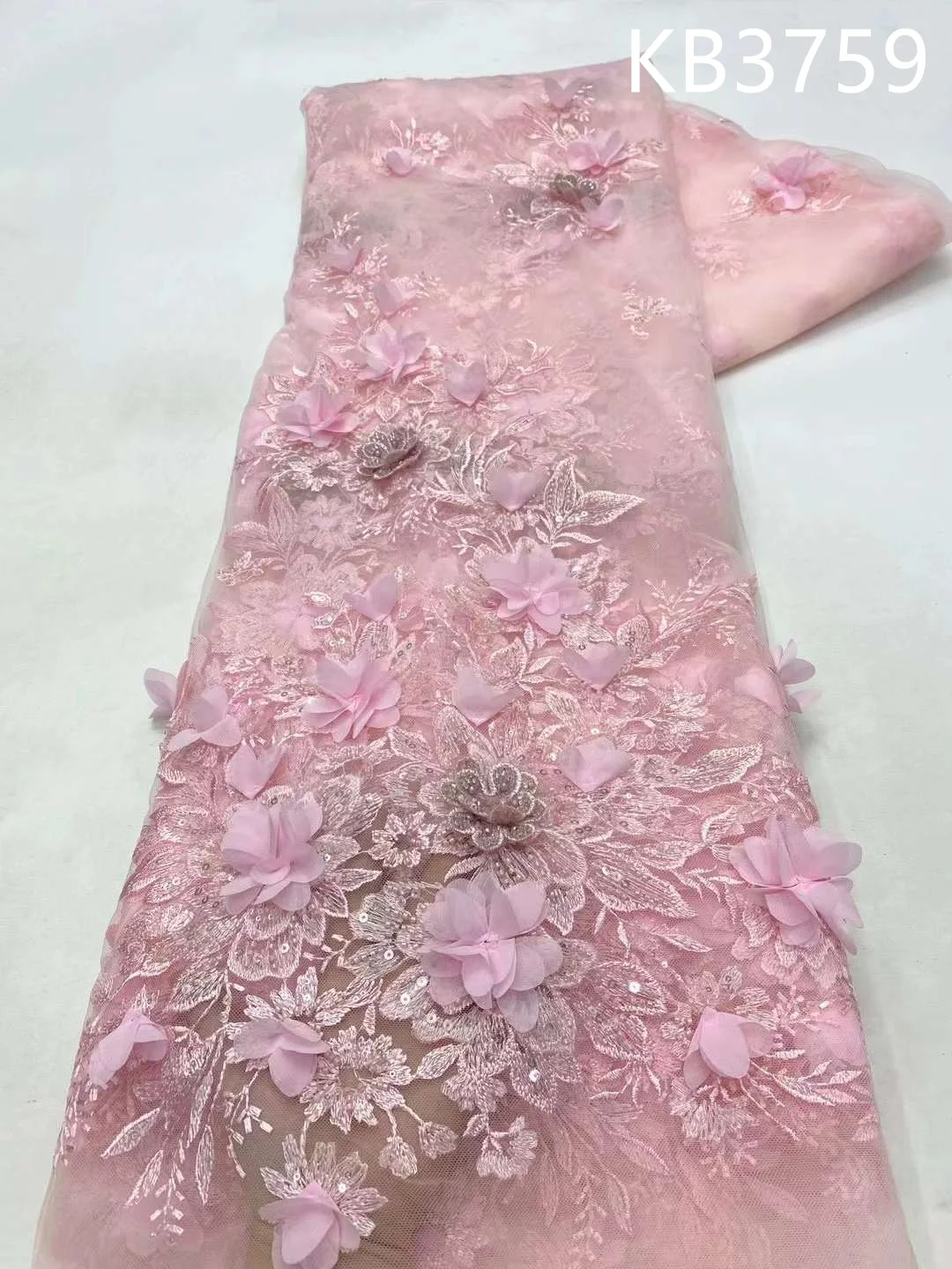 3D Flower Lace Fabric High Quality Embroidered Lace 2024 Sky Blue Beaded Lace Fabric French Mesh Lace For Wedding Dress KB3759
