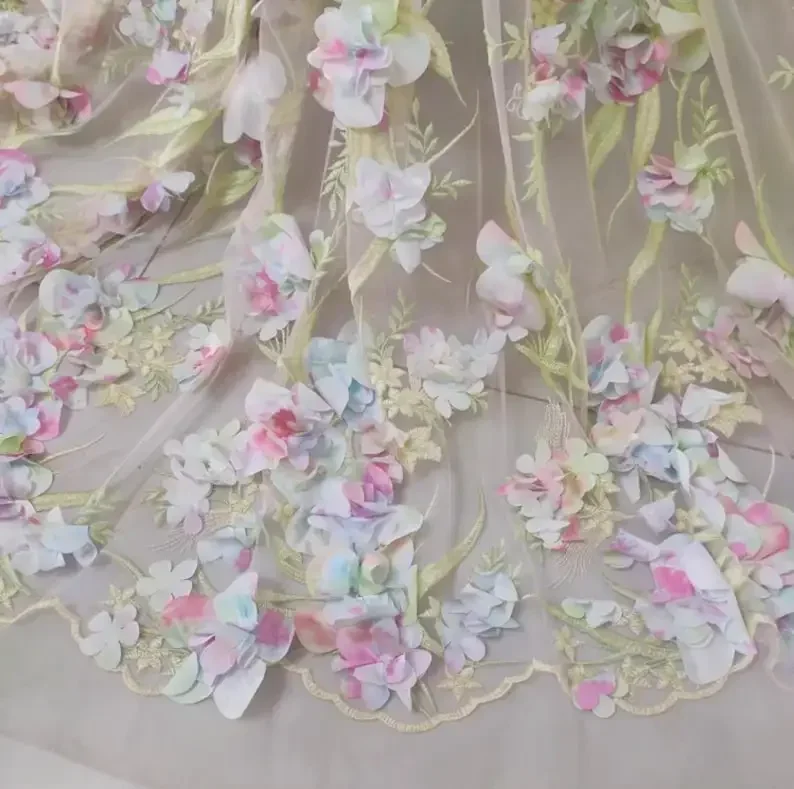 3 Colors Colorful 3D Flower Embroidered Lace Fabric Chiffon Floral Tulle For Girl Dress Tutu Dress Wedding Dress 1 set 33cm long